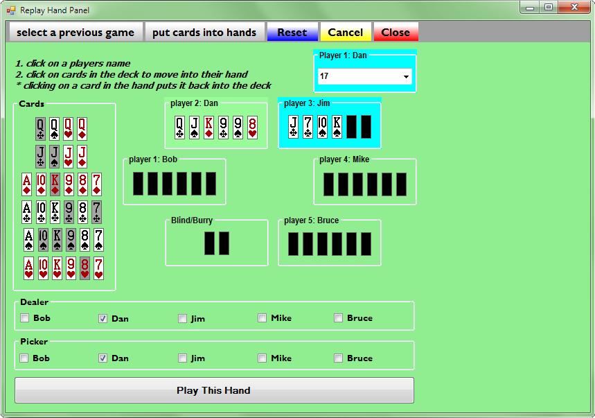 Replay Panel lets you select a hand played during the current game. The panel then put the cards into the hands