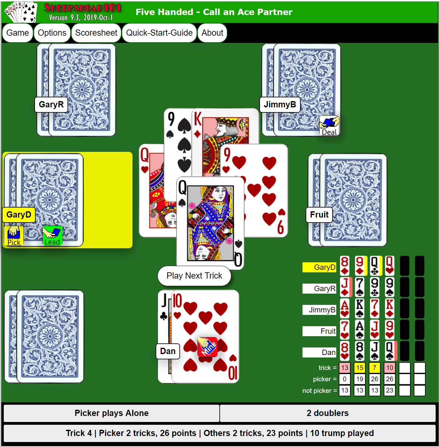 Watch Panel shows the progress of each trick as it is played and shows the progress of the hand as it is played.